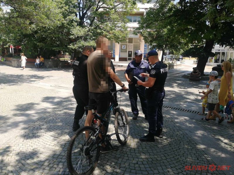 Продължават съвместните проверки на служители от Териториална полиция към РУ-Сливен и Общинска охрана за установяване на нарушения при управление на велосипеди и индивидуални електрически превозни средства /тротинетки/ в района на пешеходната зона и на пътни участъци в град Сливен. Нарушения по пътни участъци в града се установяват и от служители на Пътна полиция.