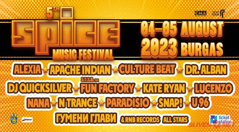 Сред останалите артисти на 5-то издание на Spice Music са N Trance, Paradisio, DJ Quicksilver, U96 и българската формация Гумени Глави, които планират да взривят публиката с легендарните си хип-хоп парчета, оставили незаличима следа в българската музикална история през 90-те.