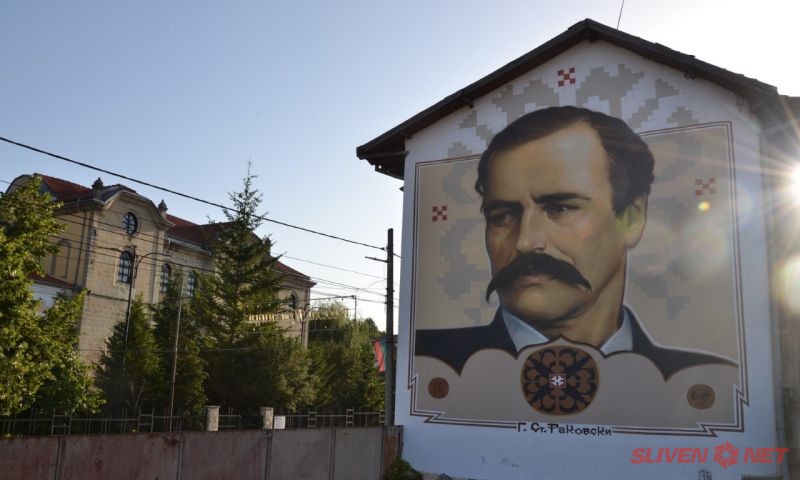 Най-големият портрет на Георги Раковски грейна като икона върху стена в Котел