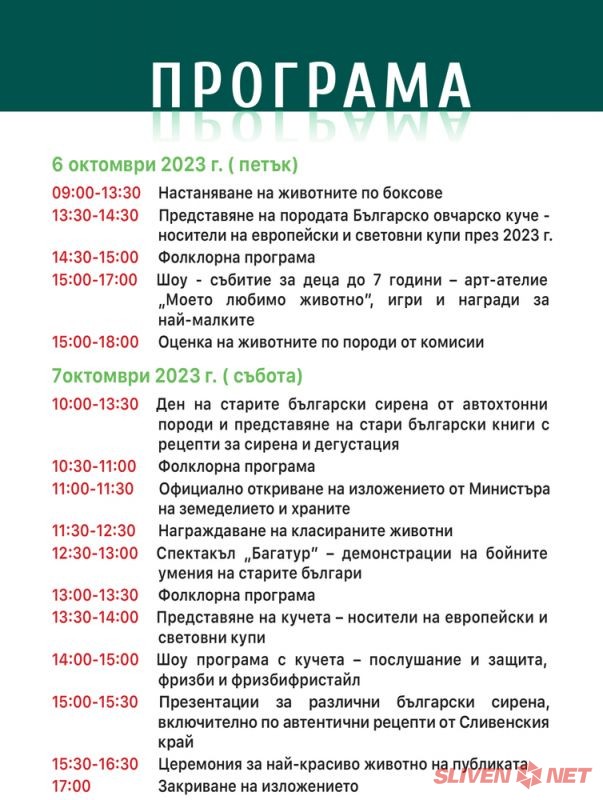 Изложението, което ще премине под мотото "Срещи на елита", за пореден път ще събере над 500 първокласни животни в Сливен, на изложбените площи до разклона за с. Мечкарево.