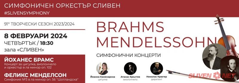 Симфоничен Оркестър Сливен отново ще бъде домакин на едно завладяващо музикално събитие, в Четвъртък 8 Февруари, от 18.30ч. в зала “Сливен”. Ценителите на класическата музика ще имат удоволствието да се насладят на великолепна програма, в изпълнението на звездни гости.