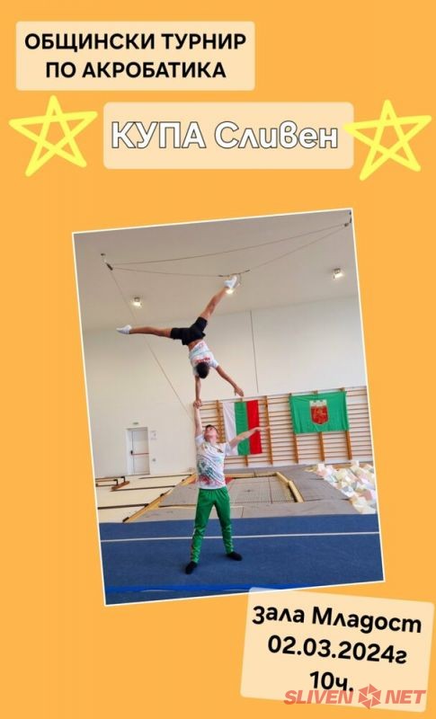 Спортното събитие ще бъде на 2 март в зала "Младост". Ще се изявят над 200 от най-добрите състезатели на пловдивския клуб Акродинамика, на Акро старс и Акро-джъмп от Бургас и Варна, на клубовете Ейнджълс и Орел от Айтос, както и на домакините – клуба по спортна акробатика "Стефан Данчев" с треньор Виолета Бинева.