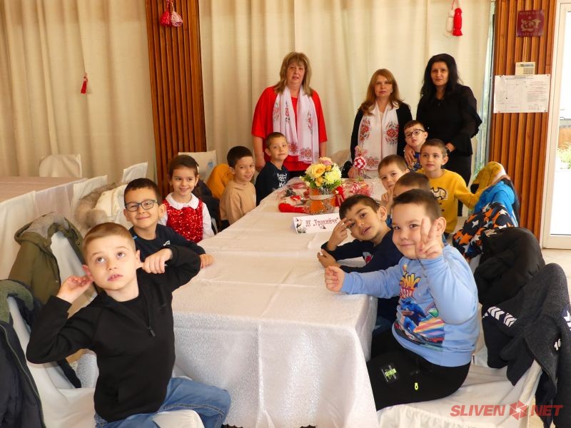 Деца от детските градини в гр. Нова Загора – „Надежда“, „Слънчице“, „Детски свят“, „Бодра смяна“ и „Тракийче“ и Център за обществена подкрепа – Нова Загора се събраха по специален повод на 26 февруари в празнично украсения Клуб на дейците на културата. Те откликнаха с голямо желание на поканата на кмета на Община Нова Загора Галя Захариева да се включат в работилница за мартеници. Най-милата и усмихната баба – Баба Марта, беше техен гост. Присъстваха и домакините – кметът г-жа Галя Захариева със своя екип от заместник-кметовете Иванка Михова, Нина Генчева и Ивайло Енев и секретаря на Общината Ангел Стойчев.