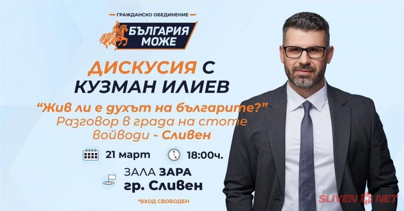 Заповядайте на дискусия с Кузман Илиев на тема "Жив ли е духът на българите?", 21 март (четвъртък) от 18:00 часа в ЗАЛА "ЗАРА".