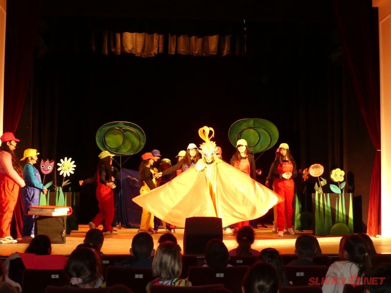 Удоволствието да заживеят с героите имаха възпитаници на началните училища в града. Вълнуващата история беше пресъздадена от актьорите от театъра, както и от възпитаниците на ОУ „Братя Миладинови“ и ОУ „Юрий Гагарин“, гр. Сливен. В спектакъла бяха вплетени ромски приказки и легенди, претворени с много артистизъм. Желанието на Птицата на щастието да твори добрини се оказа заразно, защото Доброто е част от всички сърца.