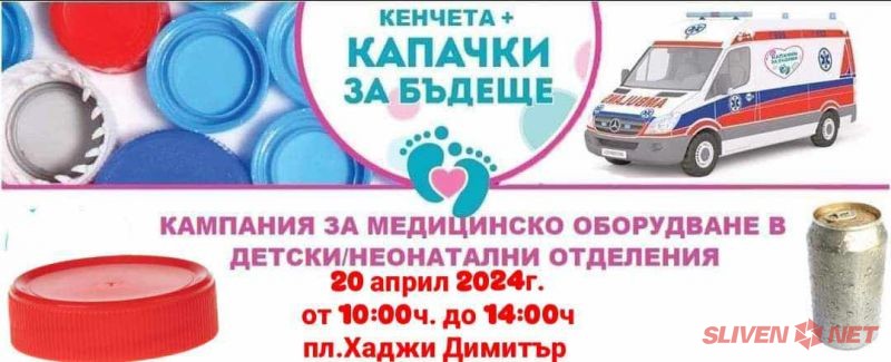За поредна година Сливен се включва в благотворителната кампания на „Капачки за Бъдеще“ на 20 април. Предавателният пункт отново ще е на пл. "Хаджи Димитър", от 10:00ч. до 14:00ч. Организатори на кампанията в Сливен са “Клуб за Бъдеще-Сливен“.