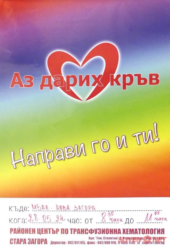 Инициативата е организирана от Районен център по трансфузионна хематология Стара Загора.