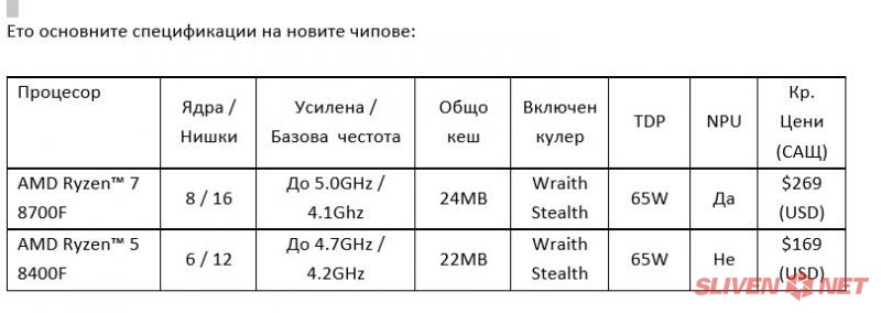 AMD добави два нови модела към серията AMD Ryzen 8000. Това са AMD Ryzen™ 7 8700F и AMD Ryzen™ 5 8400F, които нямат вградена графика, за сметка на по-ниската консумация на енергия.