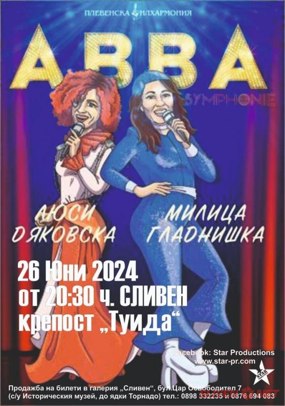 Люси Дяковска и Милица Гладнишка представят ”ABBA Symphony” с Плевенската филхармония на 26.06. в антична крепост „Туида“ от 20:30ч
