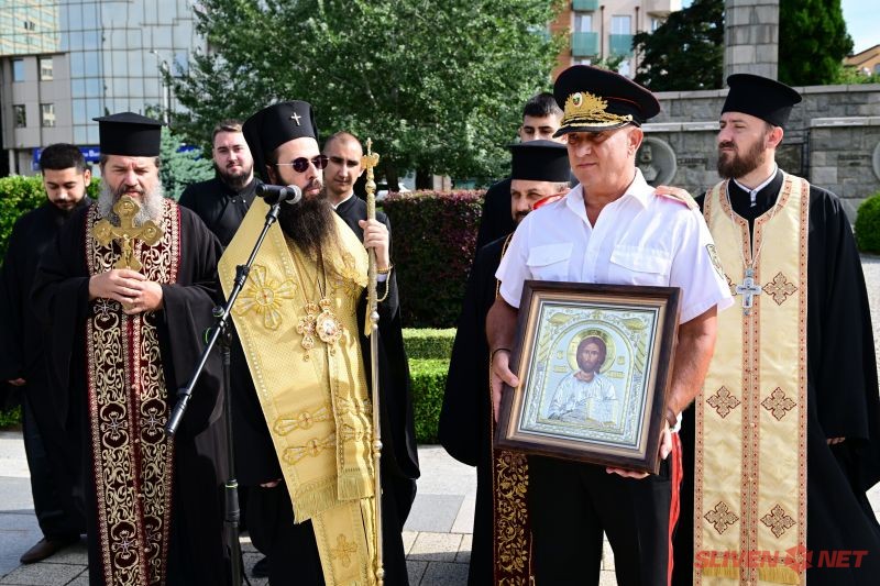 Негово Високопреосвещенство Сливенския Митрополит Арсений отслужи молебен за здраве, закрила и успех на полицейските части и представителното знаме на ОДМВР-Сливен. „ Желая Ви много сили, смелост, постоянство и мъдрост, за да може точно да отсявате чистото от нечистото, истината от неистината и вярното от невярното. Ние знаем, че през много препятствия и трудности се постигат добрите намерения и се реализират добрите успехи, затова високо ценим Вашия труд. Бог да Ви благослови, закрила и насърчи да изпълните с чест Вашата вярна служба! ”, каза в обръщение към служителите на МВР Сливенския митрополит. Той подари икона с образа на Иисус Христос на старши комисар Димитър Величков за закрила, упование и любов.