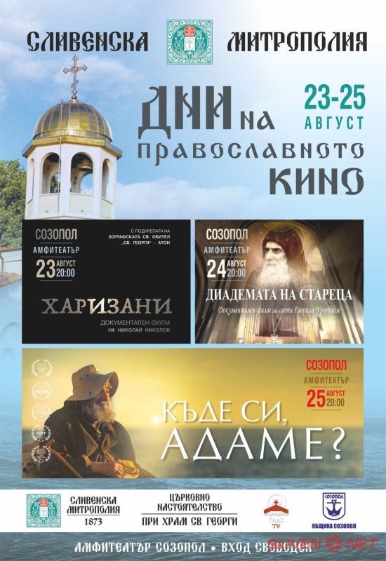 С благословението на Негово Високо Преосвещенство Сливенският митрополит Арсений, Църковното настоятелство при храм “Св. Георги“, телевизия “Епархийски глас” и община Созопол организират ДНИ НА ПРАВОСЛАВНОТО КИНО.