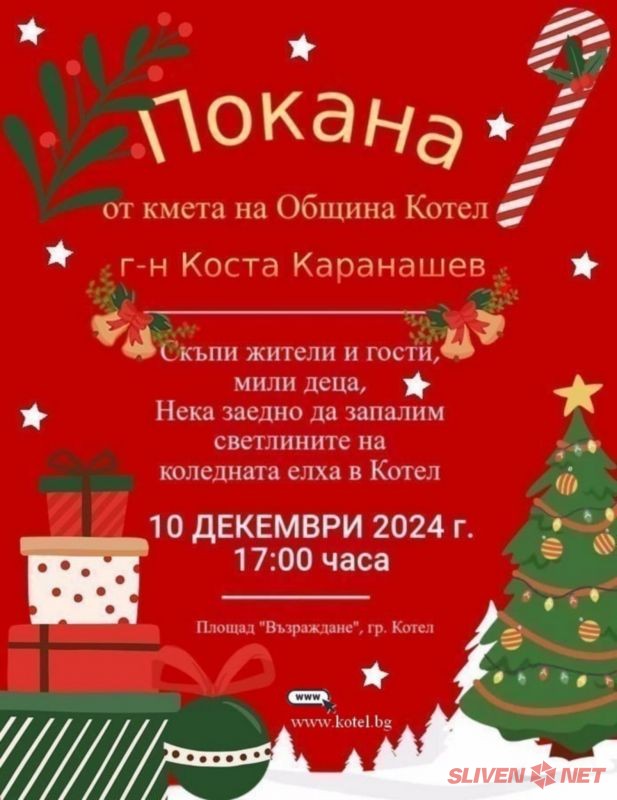 Община Котел кани всички жители и гости да се присъединят към празничната атмосфера и заедно да отбележат началото на коледния сезон.
