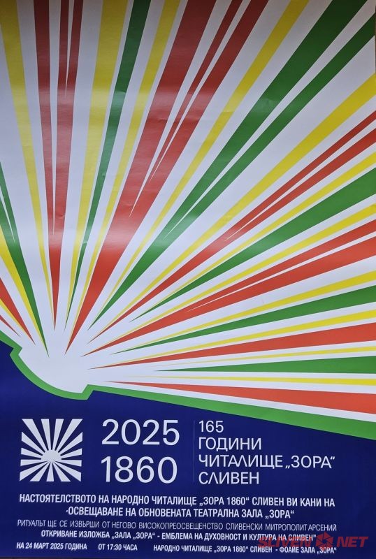 Народно читалище „Зора 1860“ – Сливен кани всички жители и гости на града на тържественото освещаване на обновената театрална зала „Зора“, което ще се състои на 24 март 2025 г. от 17:30 ч. във фоайето на залата.