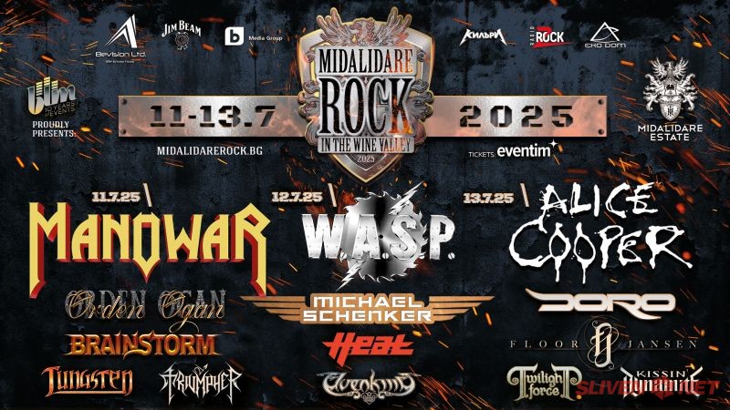 Броени дни остават до петото издание на Midalidare Rock In The Wine Valley. Фестивалът в долината на виното ще посрещне 14 световни банди - MANOWAR, W.A.S.P., Alice Cooper, DORO, Michael Schenker, Orden Ogan, H.E.A.T., Floor Jansen, Brainstorm, Twilight Force, Elvenking, Kissin’ Dynamite, Tungsten и Triumpher