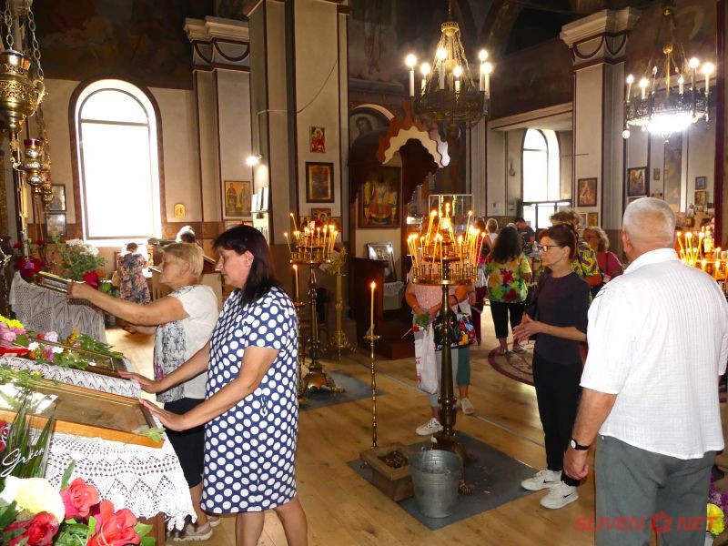 По-късно в храм „Св. Успение Богородично“ в града беше отслужена тържествена света литургия, оглавена от архиерейския наместник на Нова Загора Иван Стоянов. Божият дом се изпълни с множество миряни, дошли да отдадат почит и да се помолят за здраве и благословение. Сред присъстващите бяха и кметът Галя Захариева, както и заместник-кметът Нина Генчева.