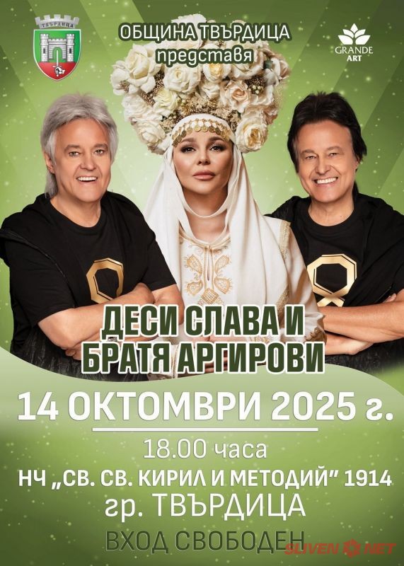 На 14 октомври 2025 г., по случай Петковден – празника на град Твърдица, жителите и гостите на града ще се насладят на празничен концерт с участието на обичаните изпълнители Деси Слава и Братя Аргирови.