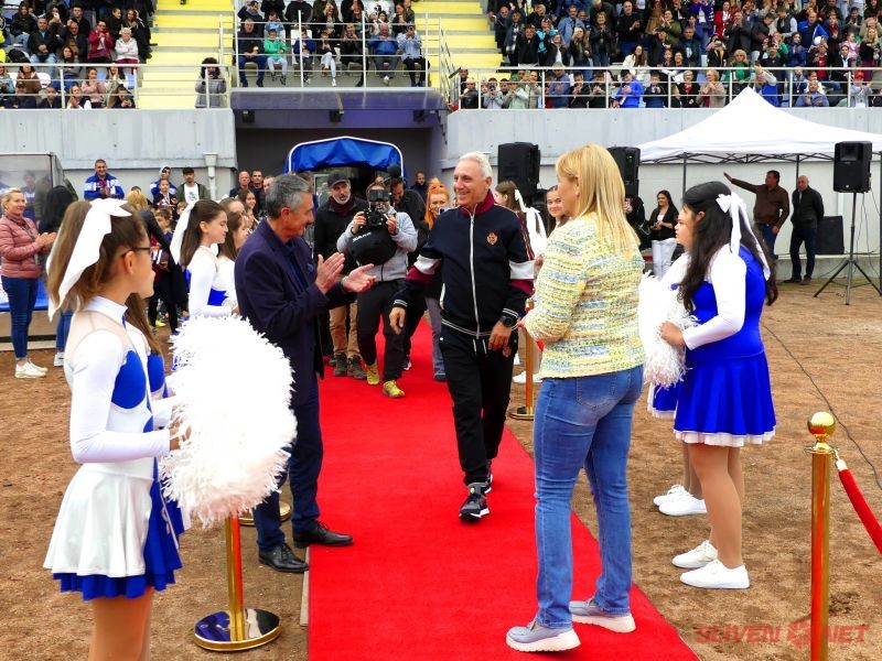 Стадионът на града се изпълни с бурни аплодисменти, усмивки и гордост, когато Камата – човекът, прославил България по целия свят, стъпи на зеления терен, посрещнат по български – с червен килим, питка и сол.