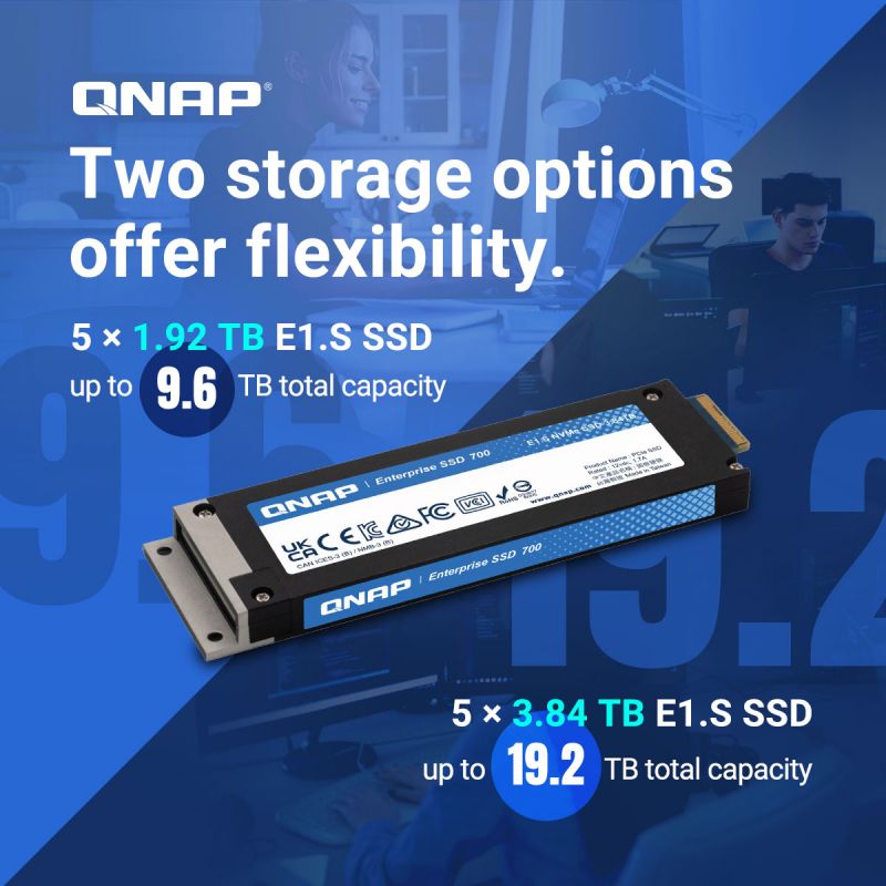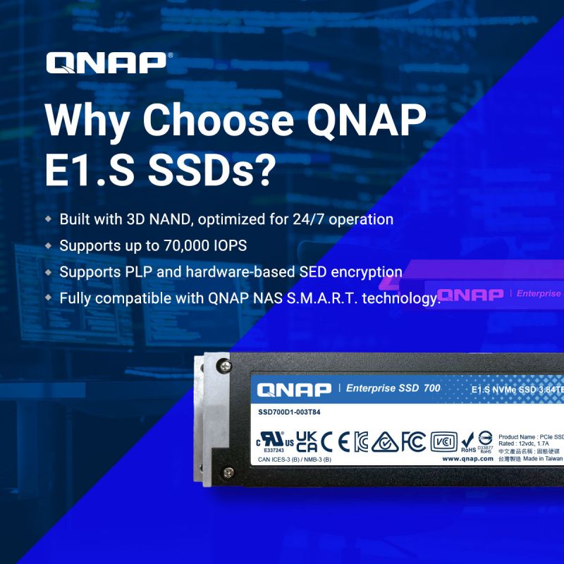 • Корпоративен клас E1.S SSD дискове, сертифицирани от QNAP