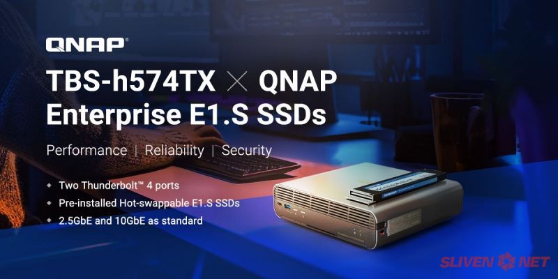 QNAP® Systems, Inc. днес обяви нови модели на известния TBS-h574TX изцяло флаш NASbook, който се предлага с предварително инсталирани корпоративен клас E1.S SSD дискове. Предлагани с два капацитета - 9.6TB или 19.2TB, новите модели са специално създадени за интензивни работни процеси като пост-обработка, включително редактиране на видео, визуални ефекти (VFX) и анимация. С поддръжка на сменяеми под захранване E1.S SSD дискове, TBS-h574TX позволява непрекъсната работа, като дава възможност на снимачните екипи на място, малките екипи за видео продукция, SOHO потребителите и мобилните мултимедийни специалисти да си сътрудничат безпроблемно и да поддържат максимална производителност.