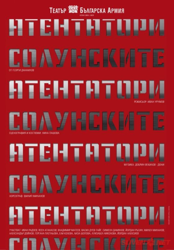 На 20 март (петък) от 19:00 часа в зала „Зора“ ще бъде представен гостуващият спектакъл „Солунските атентатори“ по текст на Георги Данаилов. Постановката е на Театър „Българска армия“, а режисьор е Иван Урумов.